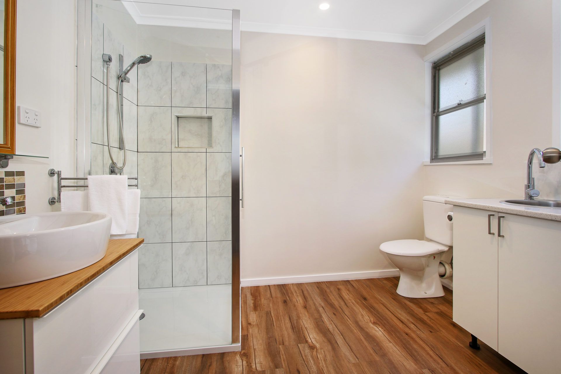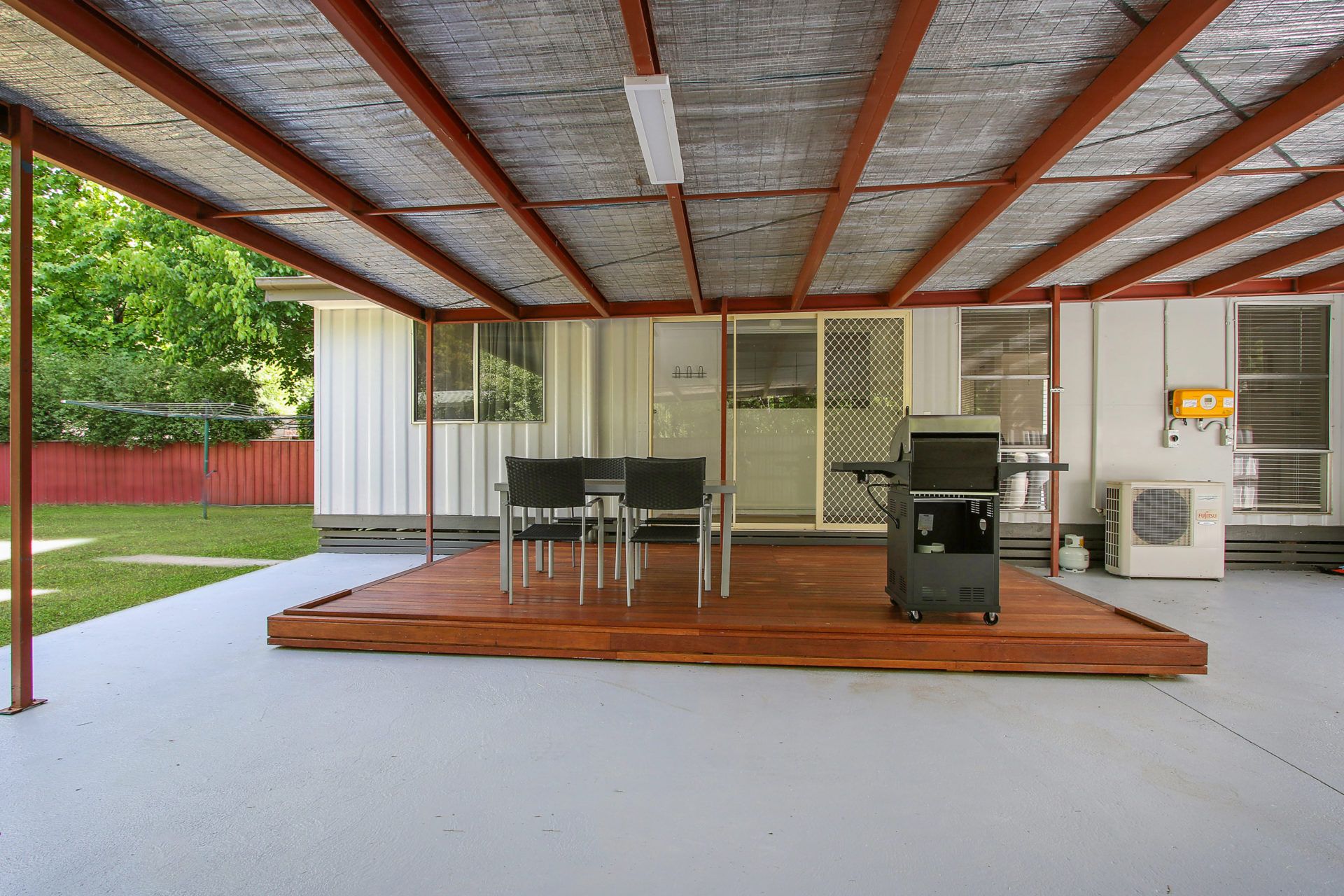 You’ll love the fully equipped galley kitchen, which opens onto a covered back deck with gas BBQ perfect for outdoor meals. The private, fully fenced yard includes kids’ play equipment, making it ideal for families.