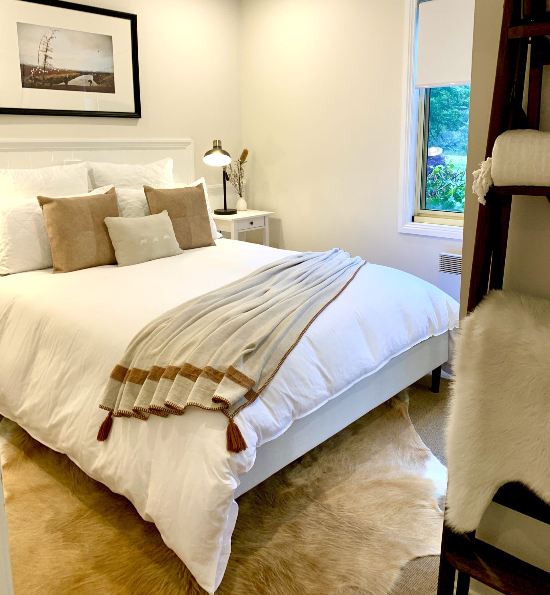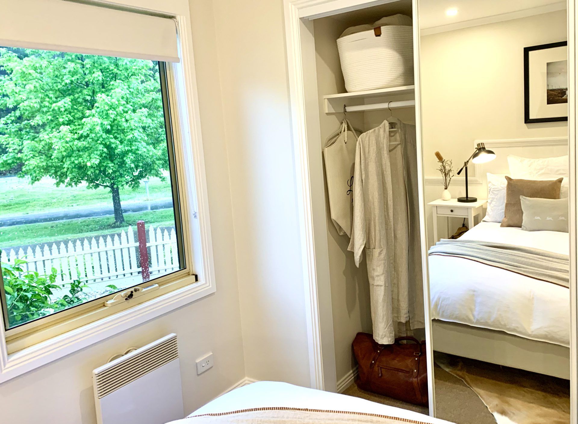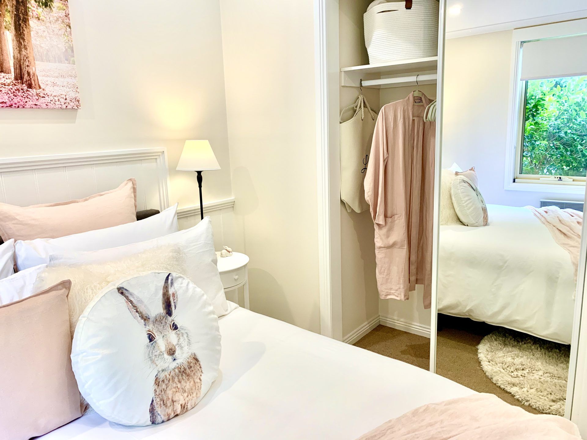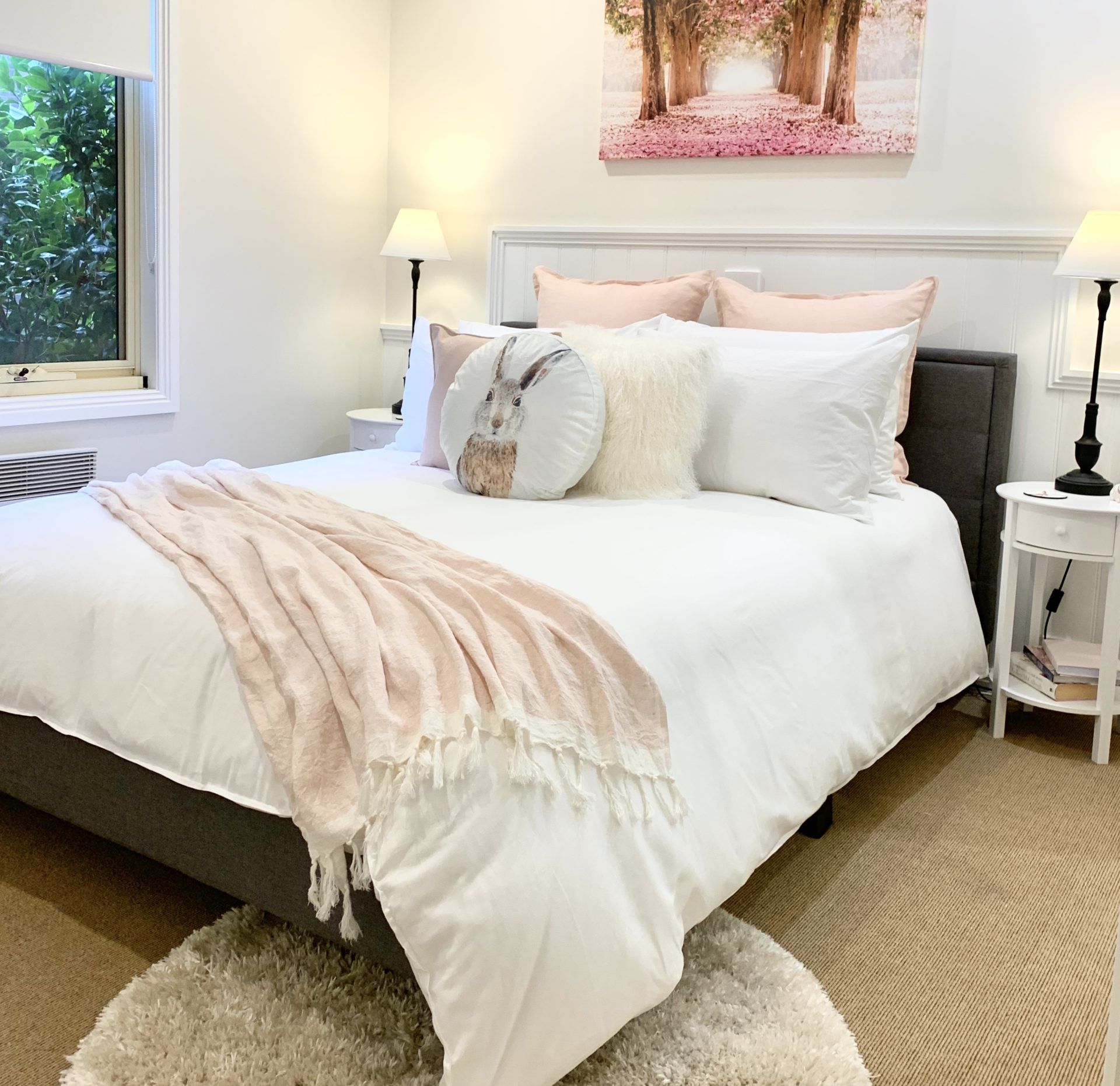 Enjoy year-round comfort with a split system in the living area, panel heaters, and ceiling fans throughout. The cottage features a stylish European laundry, a sleek bathroom with walk-in shower, and quality amenities including shampoo, conditioner, and body wash.