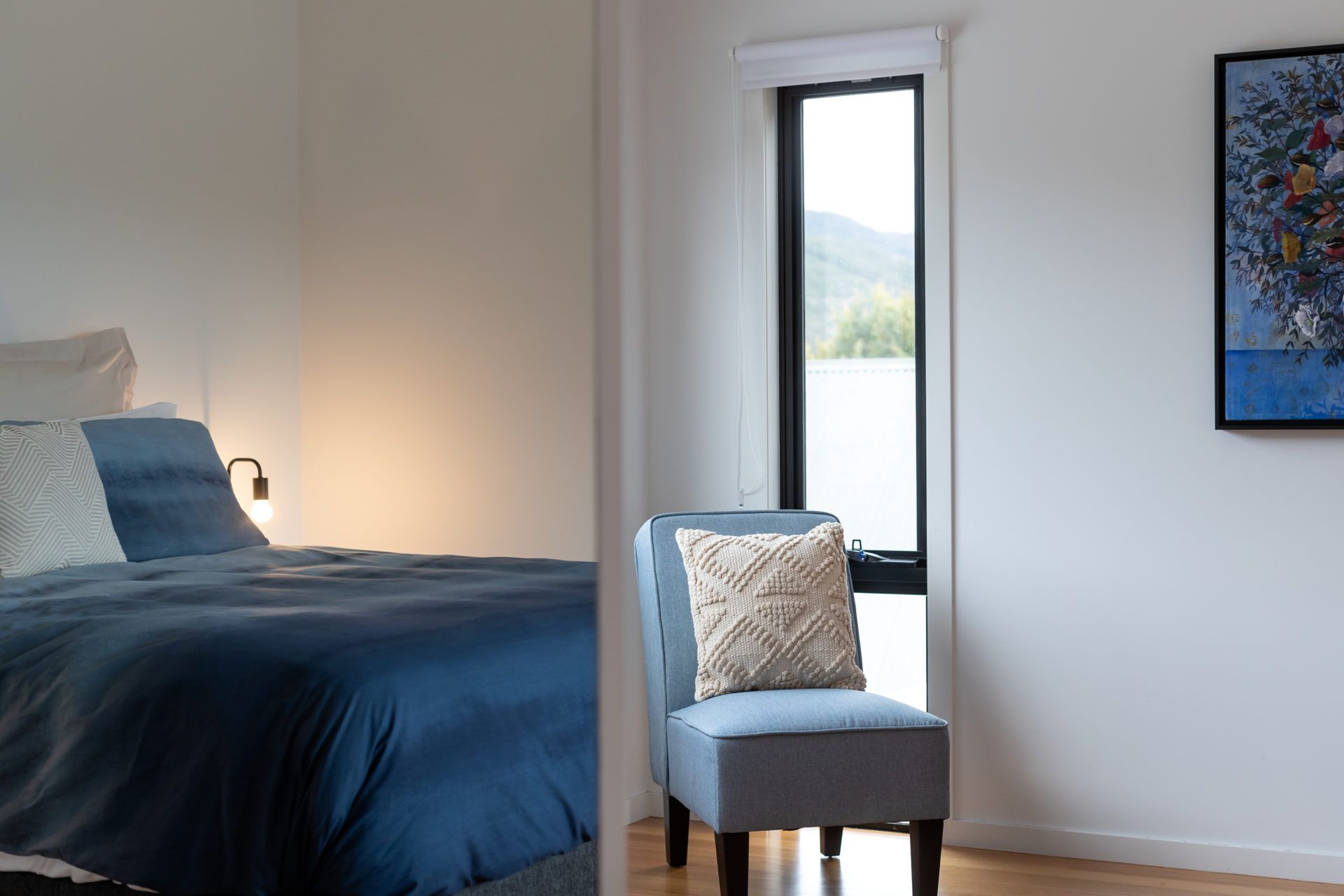 Step into the open-plan living, dining and kitchen area, where large windows frame the incredible views, and a glass-framed balcony invites you to dine or relax outdoors. In winter, stay cosy by the wood fire; in summer, enjoy cool breezes drifting down from the mountains.