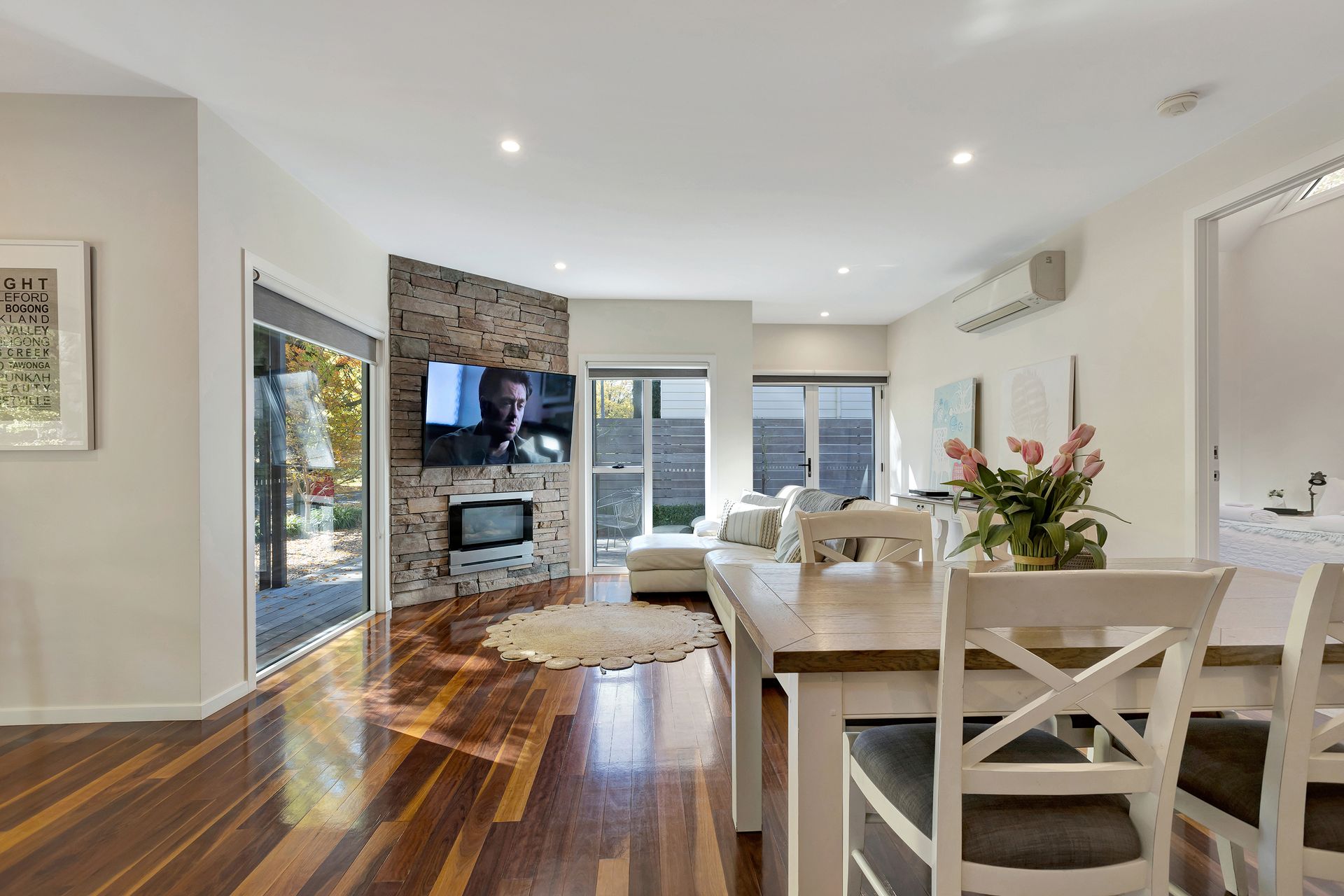 With every tiny detail thoughtfully and lovingly created, there is simply no explaining the magic of this property. The light and tasteful interior is stylishly decorated with modern white walls intermixed with timber and stone finishes. A large leather lounge takes advantage of a stunning stone pillar boasting a gas fire heater and enormous flat screen TV. Comfort is a given with reverse-cycle air-conditioning throughout, soft luxurious bedding and separate bathrooms.