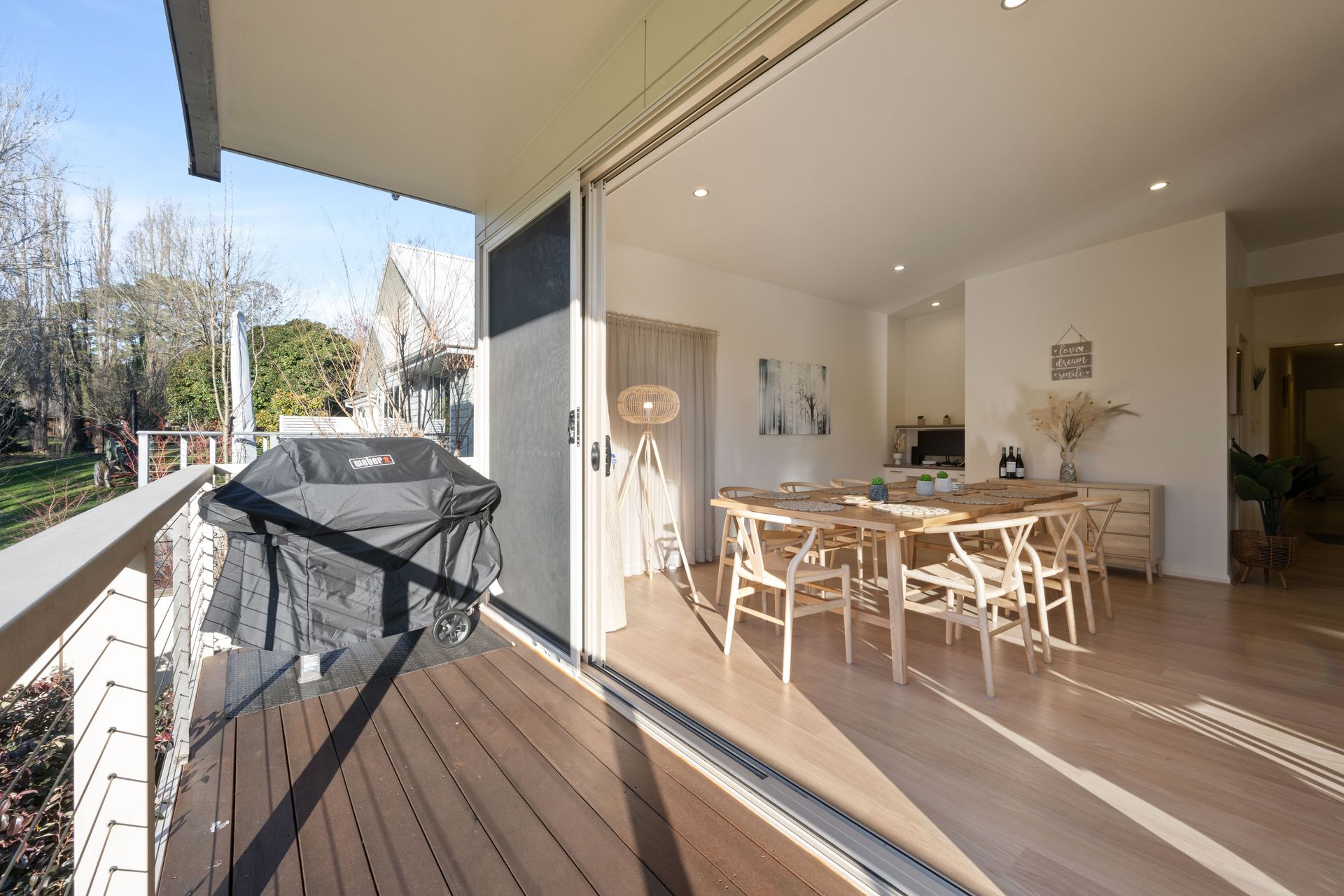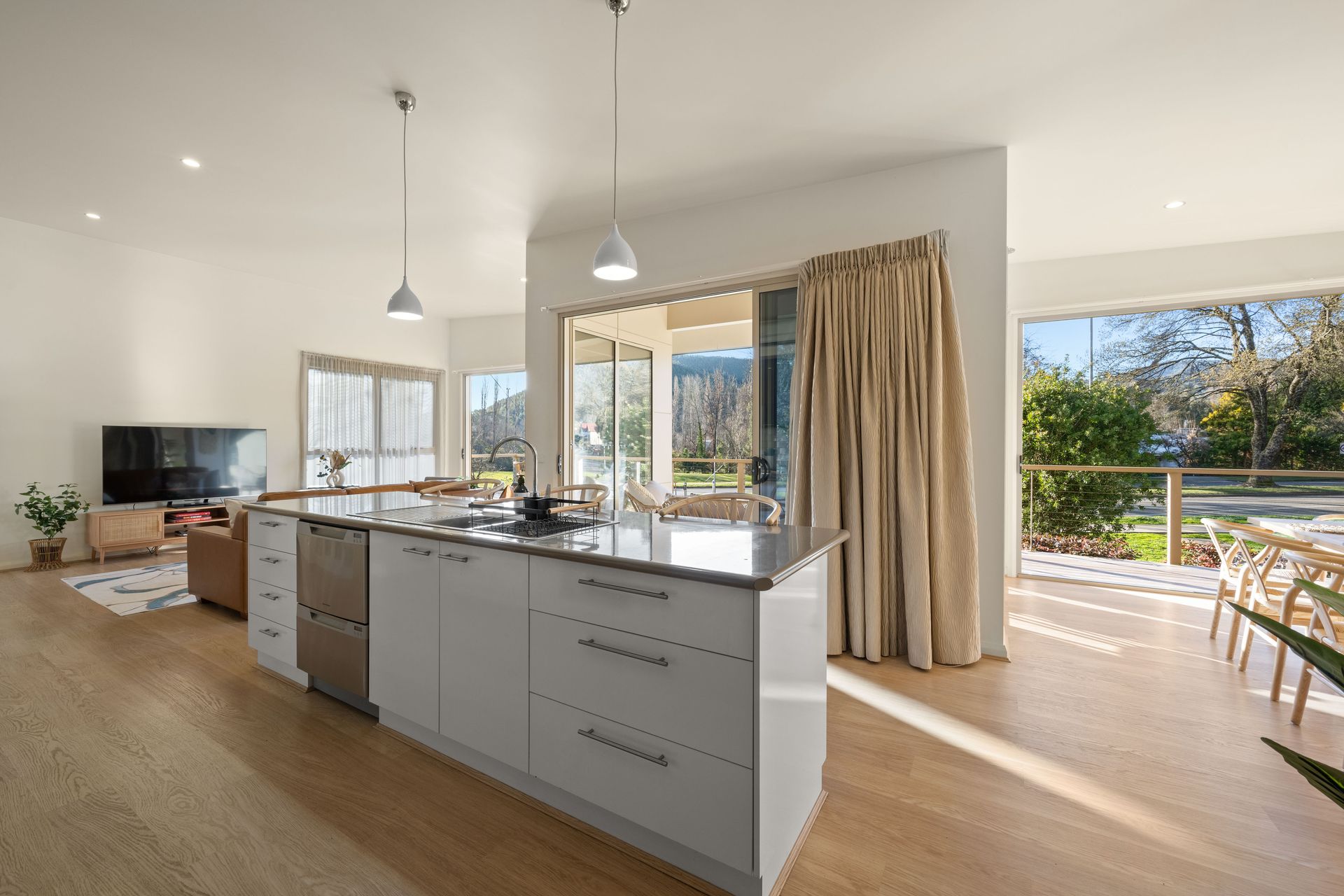 With 3 bedrooms, 2 bathrooms, and open plan living, this thoughtfully designed holiday home comfortably accommodates families, couples, or small groups. Large windows flood the space with natural light, while the timber deck offers a gorgeous outdoor extension of the living space perfect for entertaining or simply relaxing with a local wine.