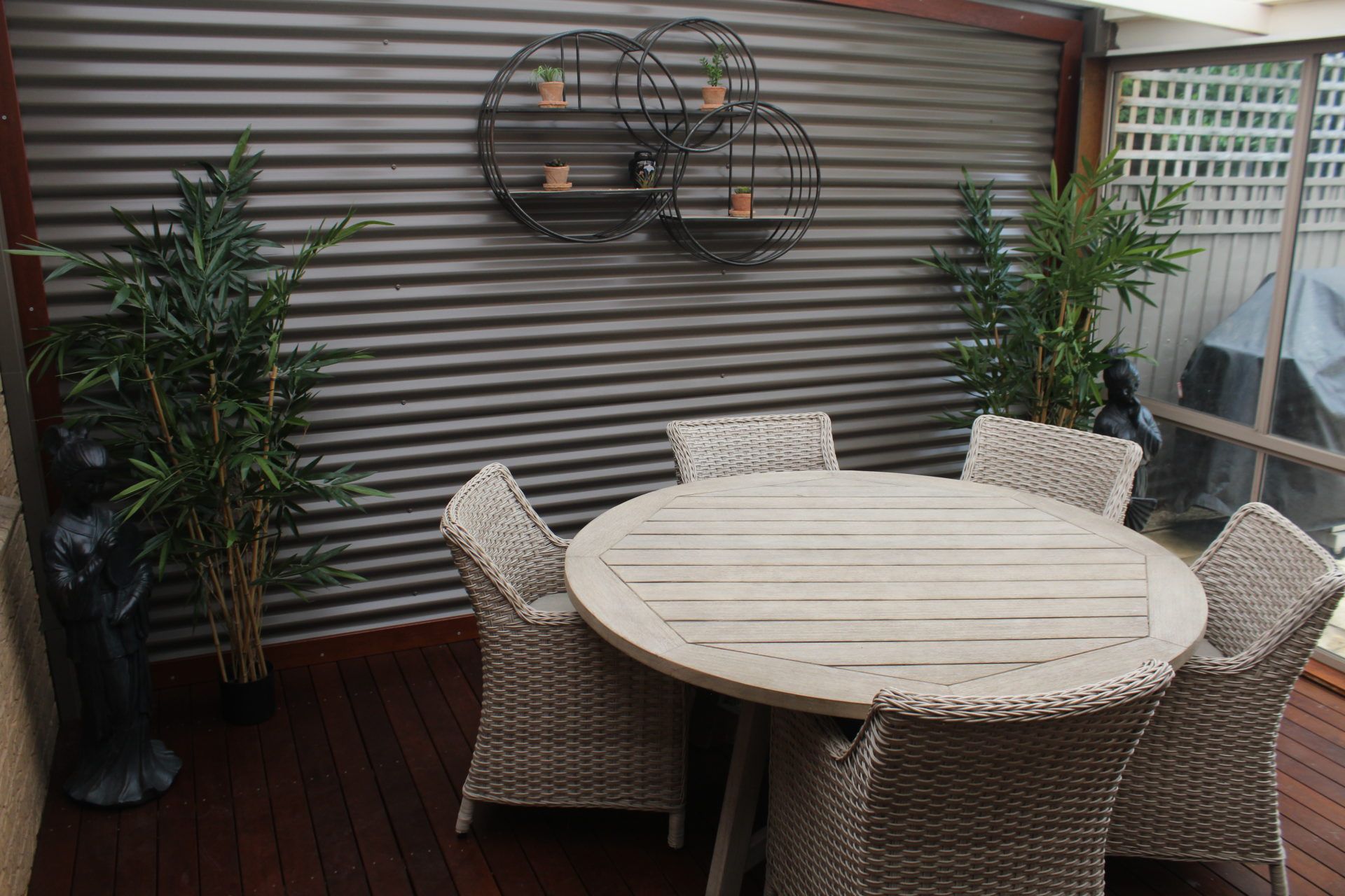 Step outside to the covered decked area, ideal for outdoor dining and quiet relaxation, or enjoy the sunny rear courtyard with clothesline and secure lock-up garage perfect for storing bikes or outdoor gear.