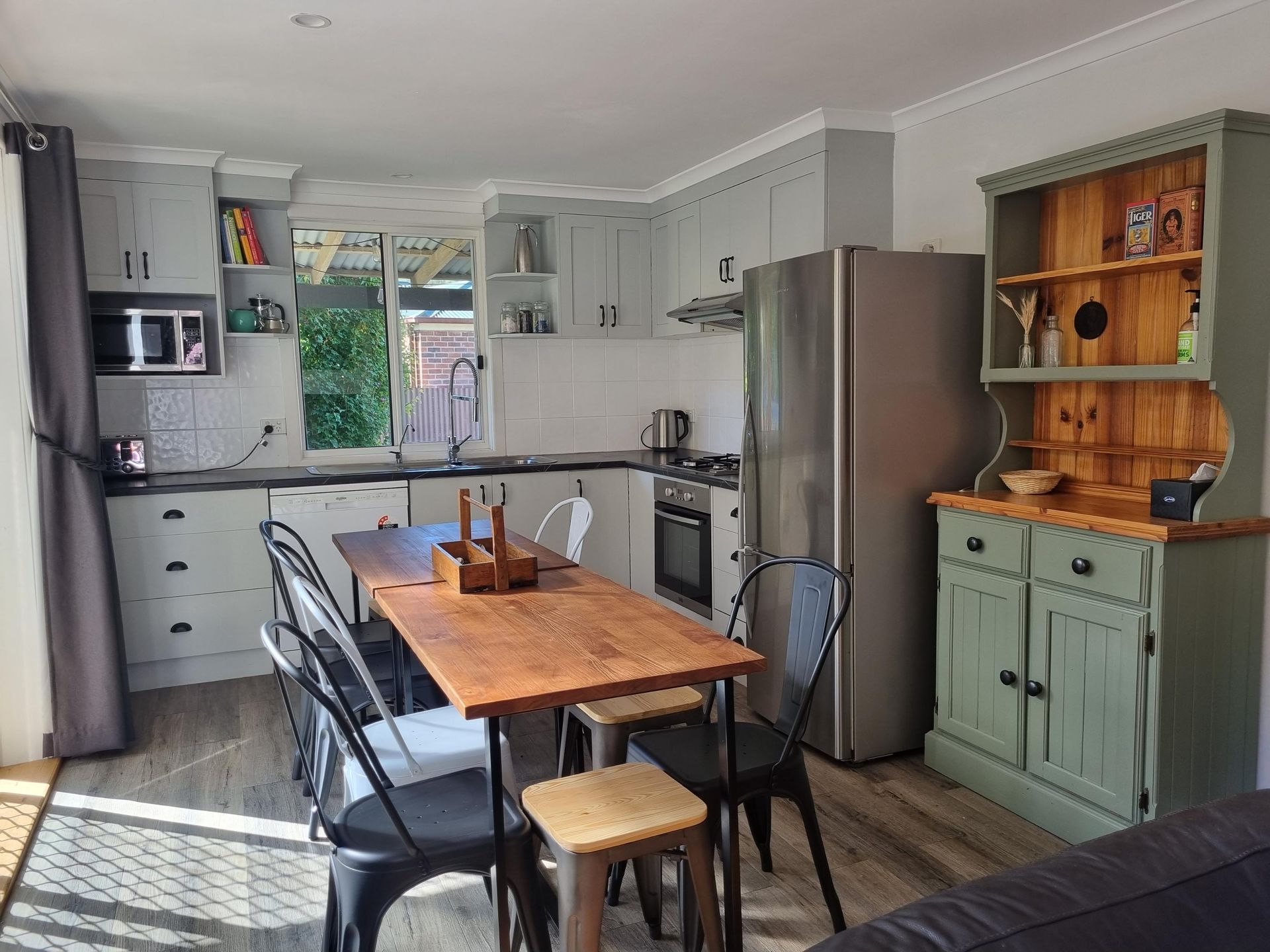 The fully equipped kitchen is a delight for home chefs, with gas cooking, a large fridge/freezer, dishwasher, and filtered water on tap. Step out onto the deck for al fresco dining with stunning views over the town centre and surrounding hills.