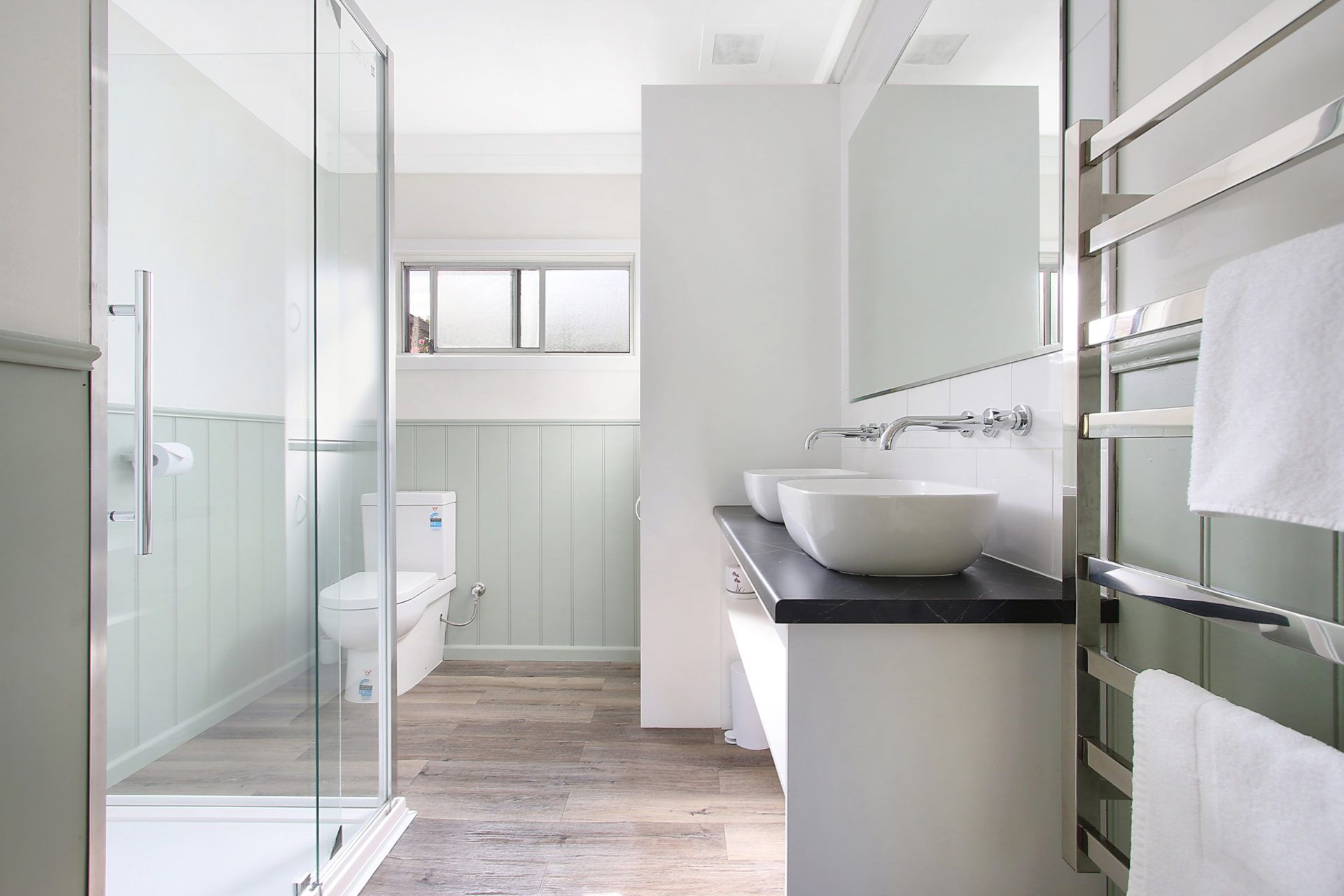 The private backyard is fully fenced and perfect for families, featuring lawn space, shady seating areas, and a huge outdoor table for 10. It’s also a dream for cyclists, with a dedicated, lockable bike shed and workshop.