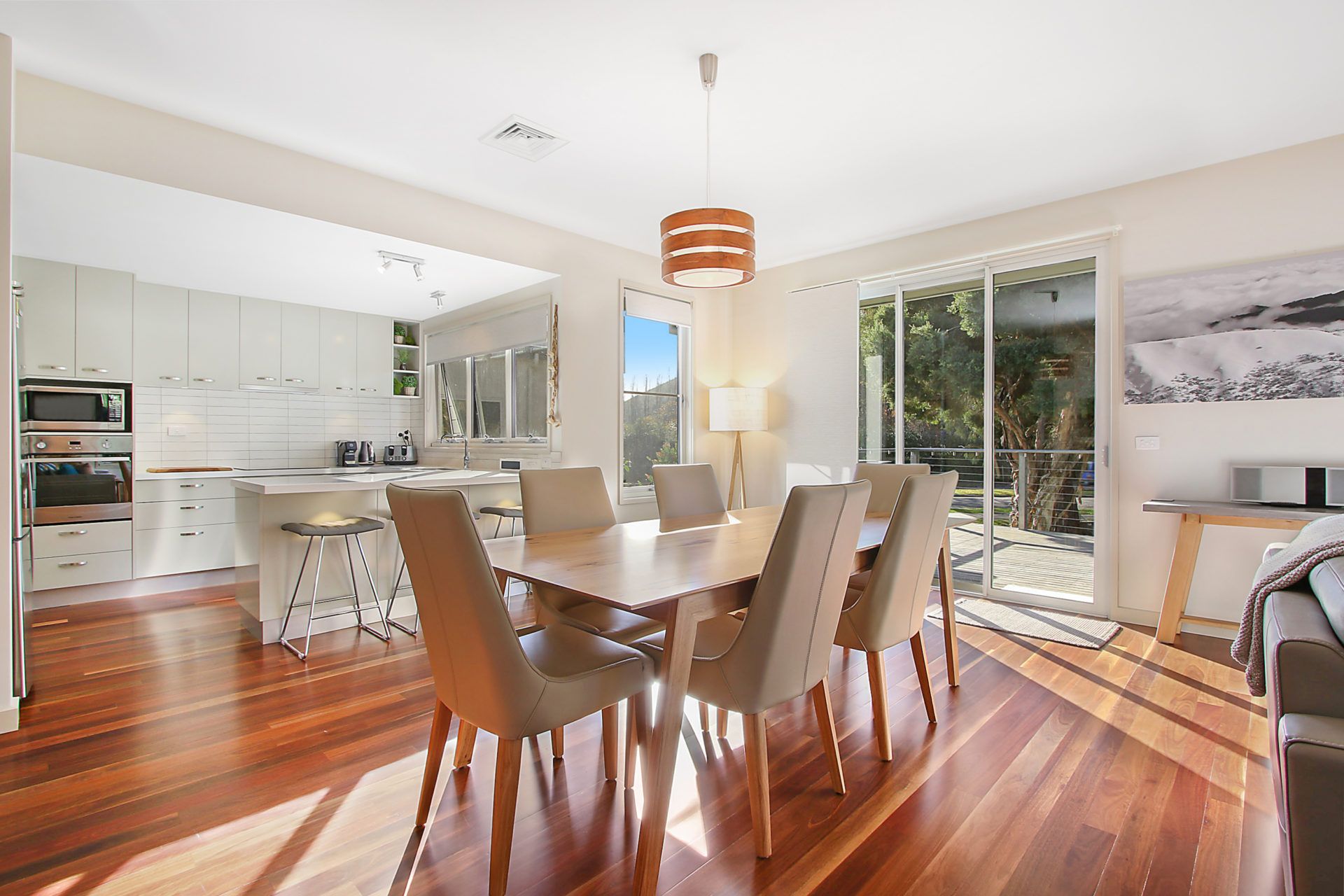Enjoy seamless indoor-outdoor living with a timber deck, complete with a BBQ and outdoor dining setting ideal for summer evenings.