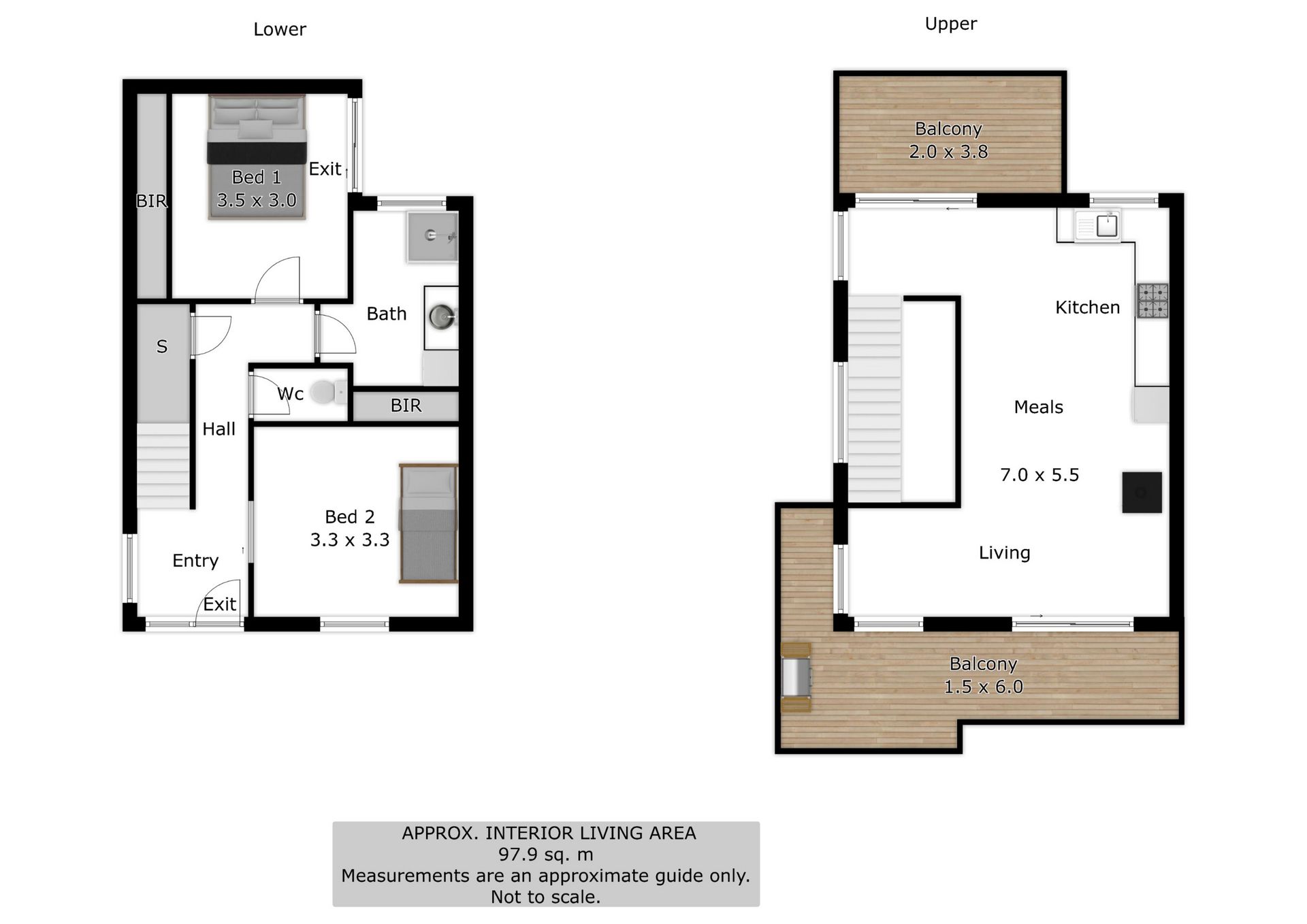 Downstairs, two spacious bedrooms and a modern bathroom provide all the comfort you need, while split system heating and cooling ensures year-round comfort.