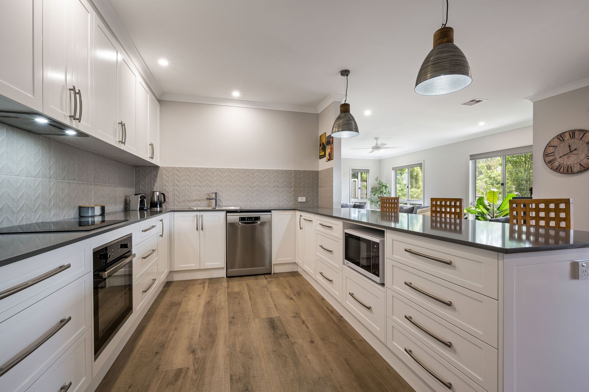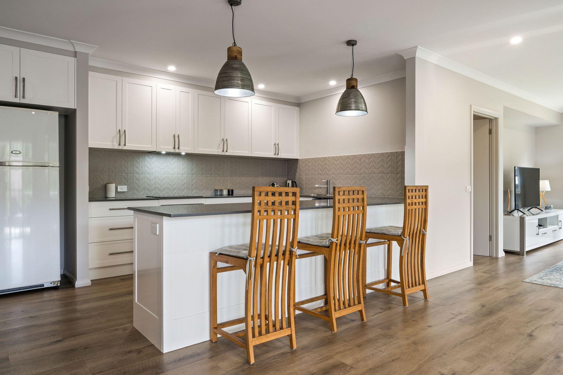 Outside, multiple garden sitting areas and spacious front and rear decks make the most of the natural light and surrounding greenery. Enjoy lazy mornings with coffee on the deck, sunset drinks at the bar table, or a game of tic-tac-toe in the garden perfect for families and kids at heart.