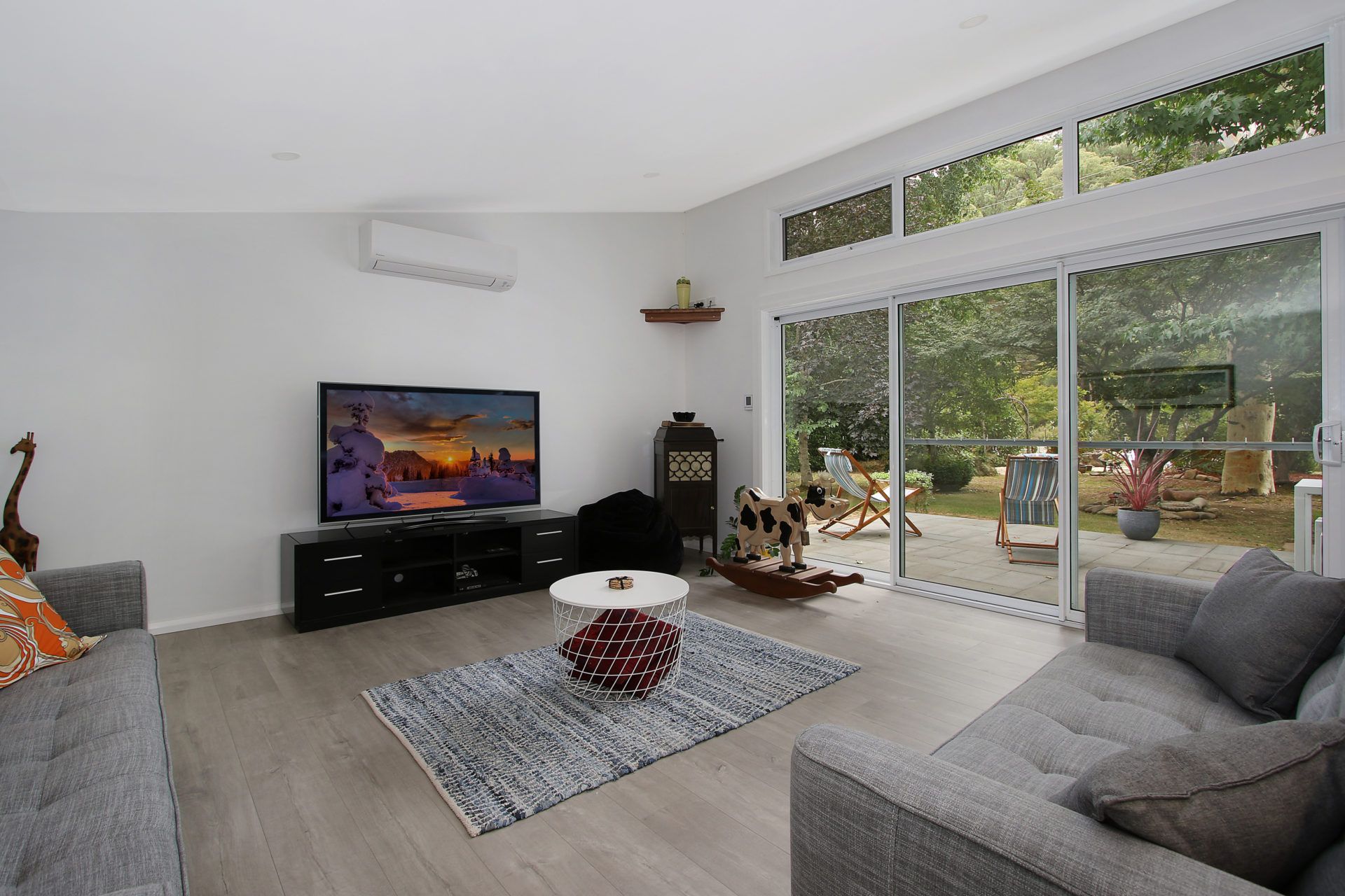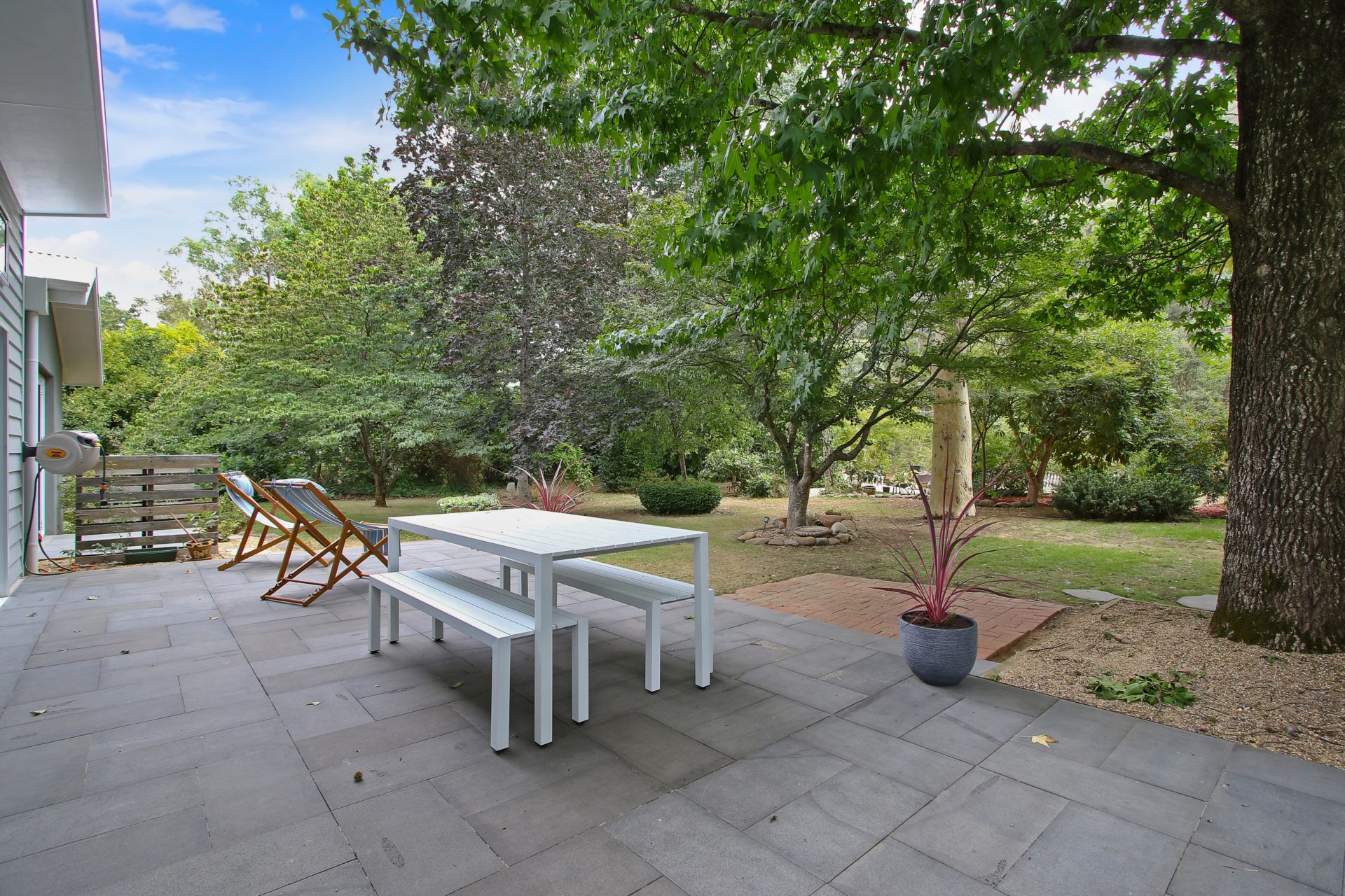 Designed with comfort and style in mind, the open-plan living space is bright and spacious, featuring a wood fire, reverse cycle heating and cooling, and a large smart TV with DVD player ideal for cosy nights in. Step outside onto the shaded patio for outdoor dining and a BBQ or enjoy a peaceful moment by the garden firepit.