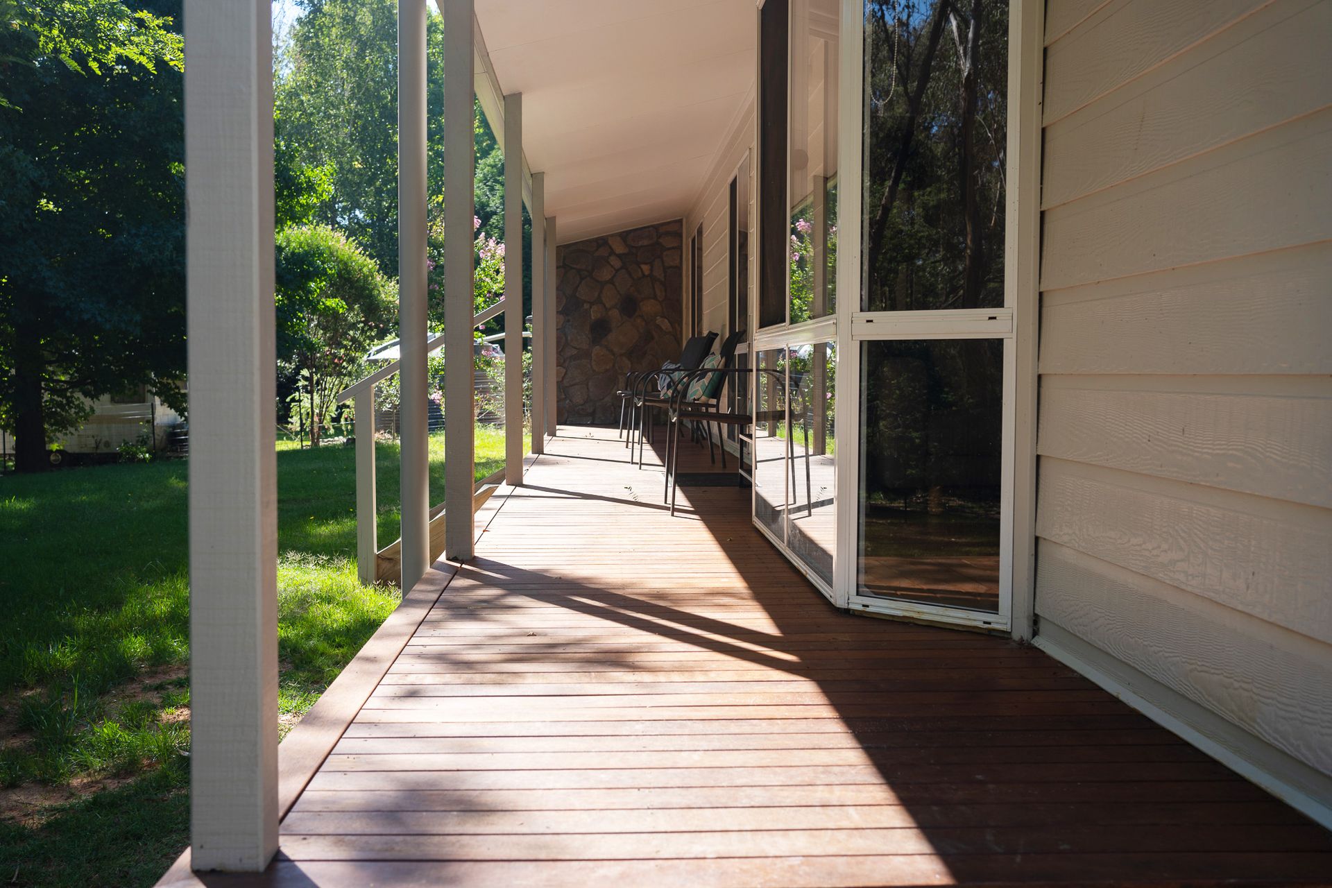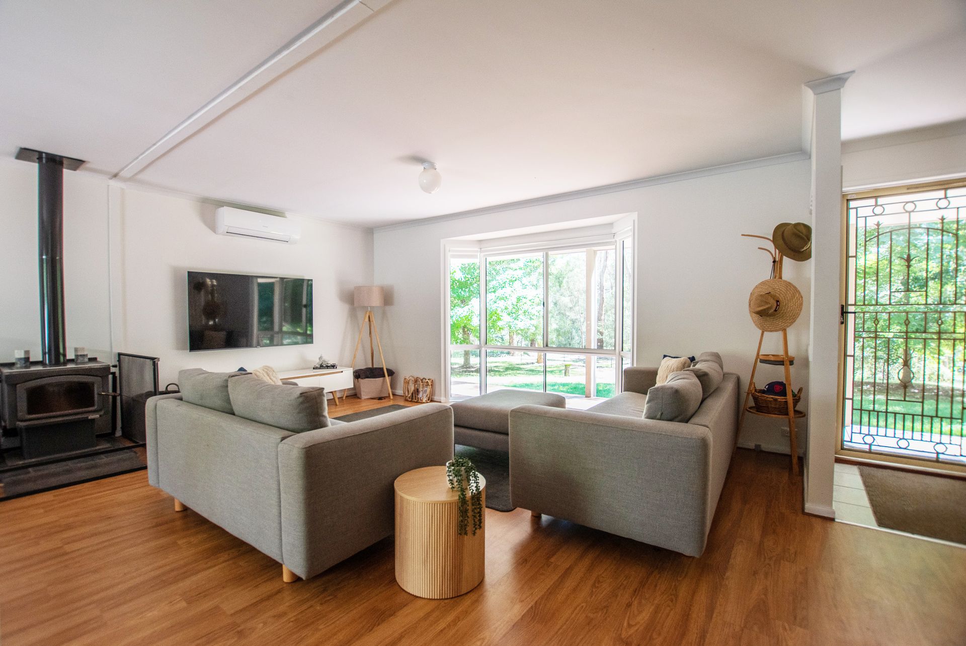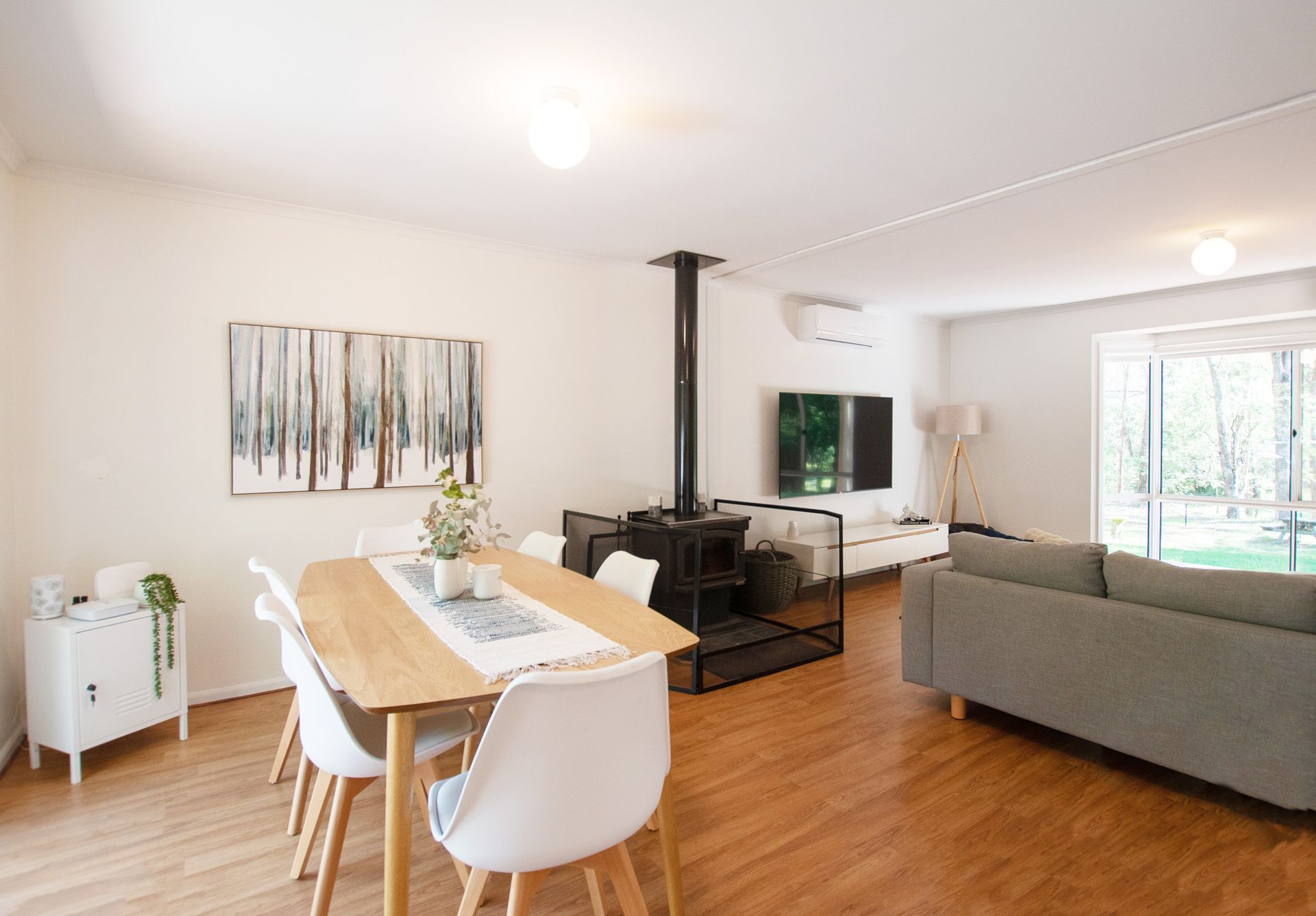 Step into the light-filled open plan living area where warm timber tones and large windows invite sunshine and views of the lush garden. A wood fire keeps things cozy in winter, while reverse cycle air conditioning ensures comfort year-round. The front deck overlooks a generous backyard that leads to the Ovens River perfect for morning coffees, sunset drinks, or simply soaking in the serenity.