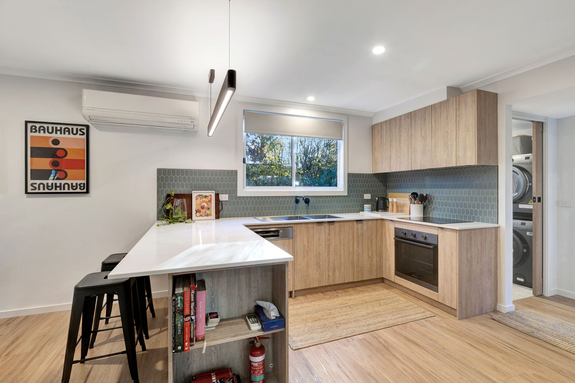 Inside, you’ll find all the comforts of home, including a full kitchen, open-plan dining and lounge area, split system heating and cooling, free Wi-Fi, smart TV, and a gas BBQ. There’s also a lock-up shed for secure bike storage.