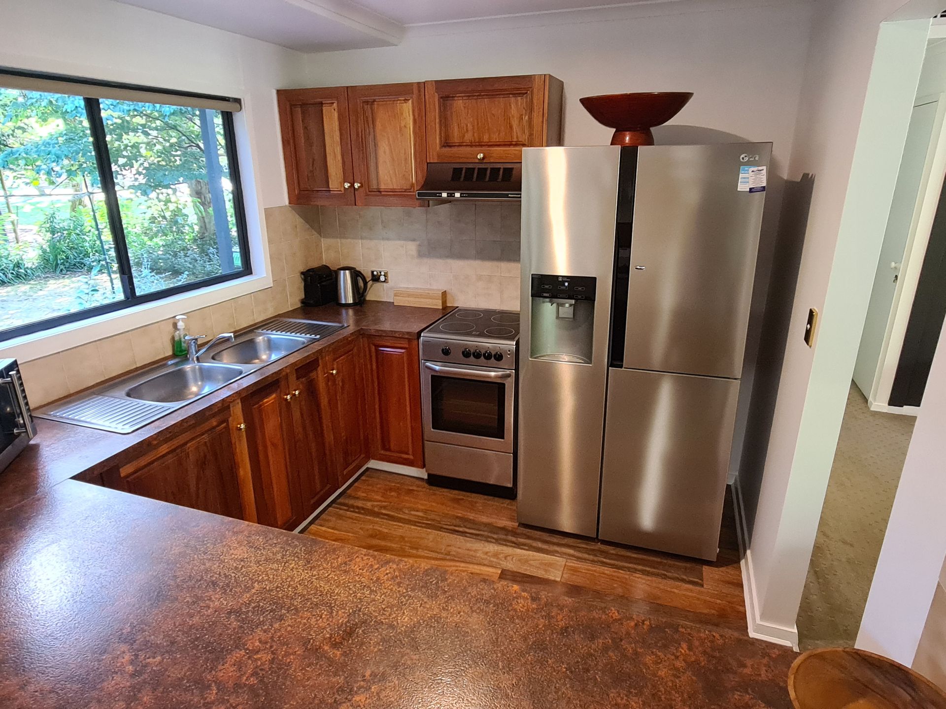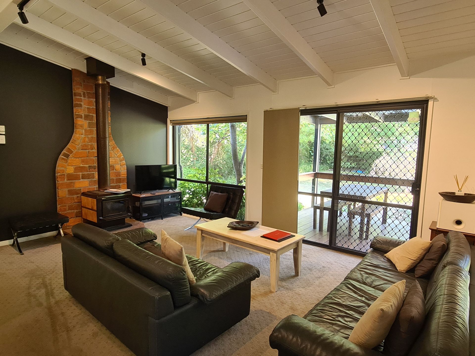 Enjoy a private, peaceful garden setting with ample summer shade and winter sun. The open plan living, dining, and kitchen area features highly efficient reverse cycle air conditioning and a slow combustion wood fire that provides a warm ambience during winter. Relax in the lounge on the large couch and recliner after a busy day in Bright.